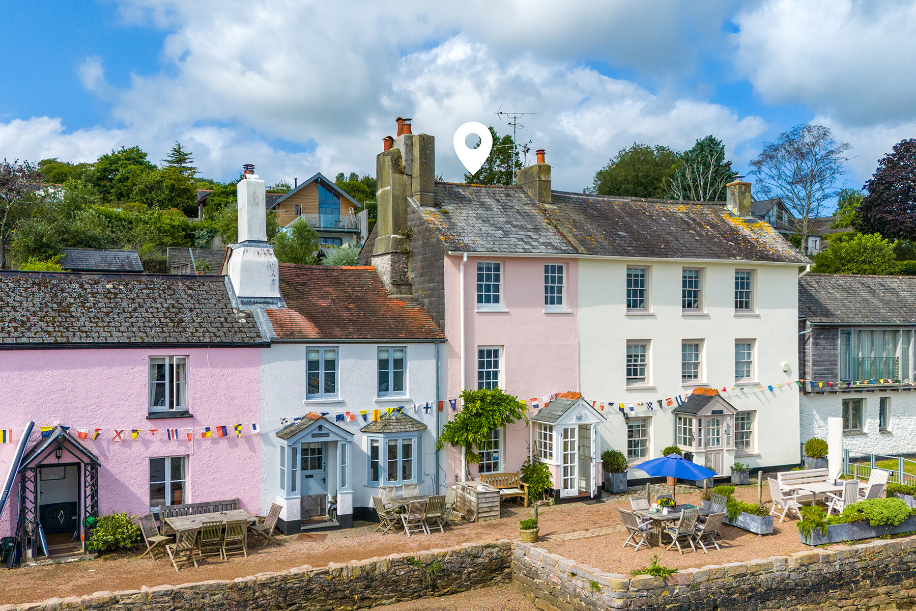Dunedin Cottage is a stunning period house located on the quayside of one of Devon’s most picturesque waterside villages – Dittisham. With the wonderful River Dart immediately on its doorstep, guests have the opportunity to enjoy a waterside holiday, along with soaking up the relaxed riverside ambiance within the comfort of the tastefully presented home. Sitting right on the quayside, guests are presented with uninterrupted views across the river towards Greenway Estate, from Agatha Christy fame, and will be certain to appreciate morning drinks whilst the early light shimmers on the high tide. With outside seating on the front patio, as well as in the rear garden, al fresco dining is sure to be on the cards during warmer months, however with the benefit of a spacious well-equipped kitchen/diner and cosy living room with log burner, there’s plenty of space to relax indoors should the weather come in.